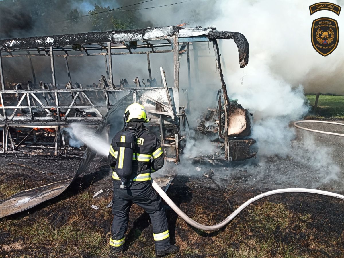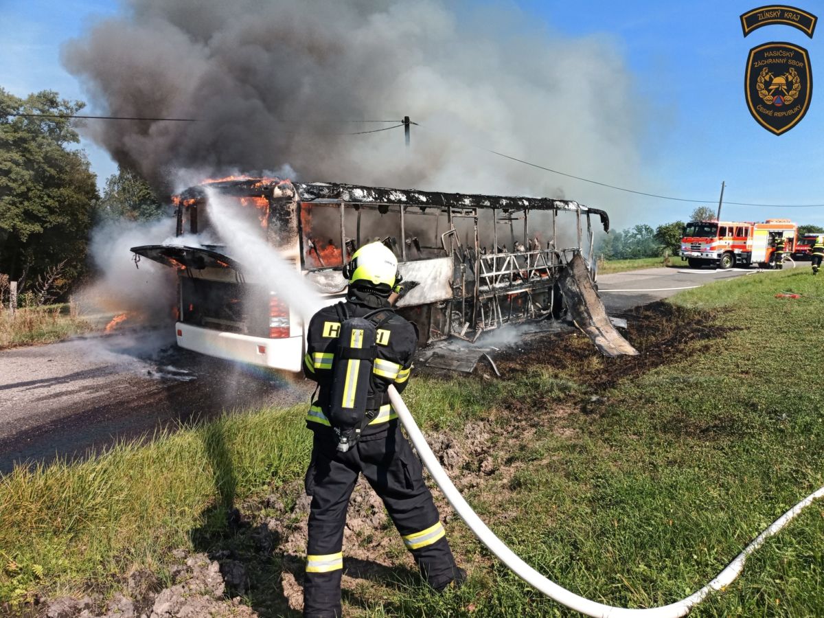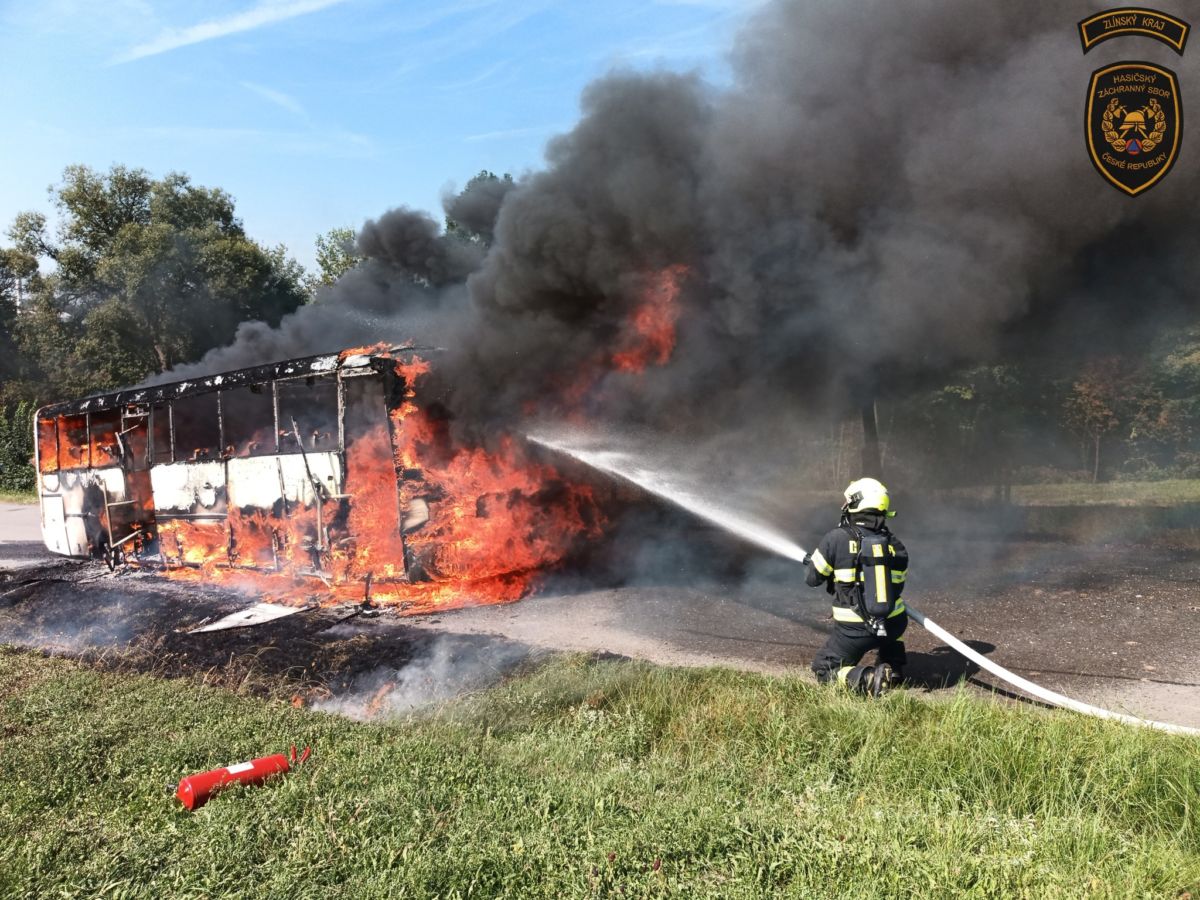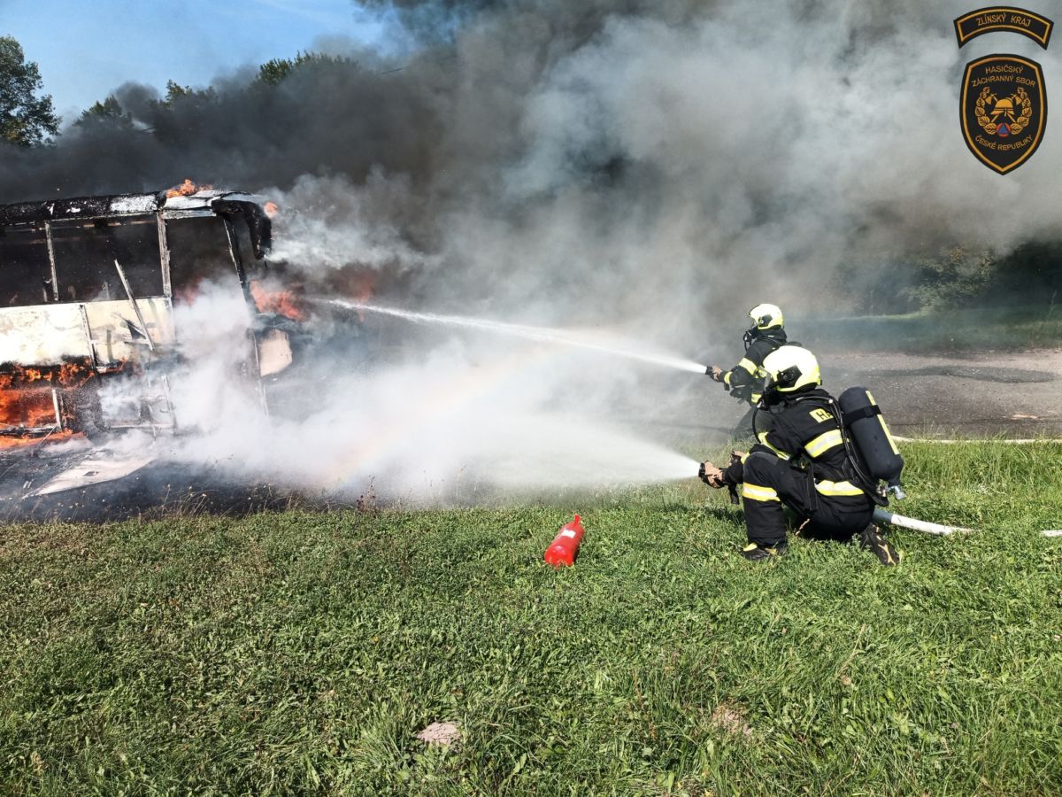 „Po příjezdu na místo byl autobus celý v plamenech. Hasiči ihned zahájili hasební práce a v dýchací technice s několika hasebními proudy vody požár uhasili do dvaceti minut,“ popsala mluvčí hasičů Lucie Javoříková.