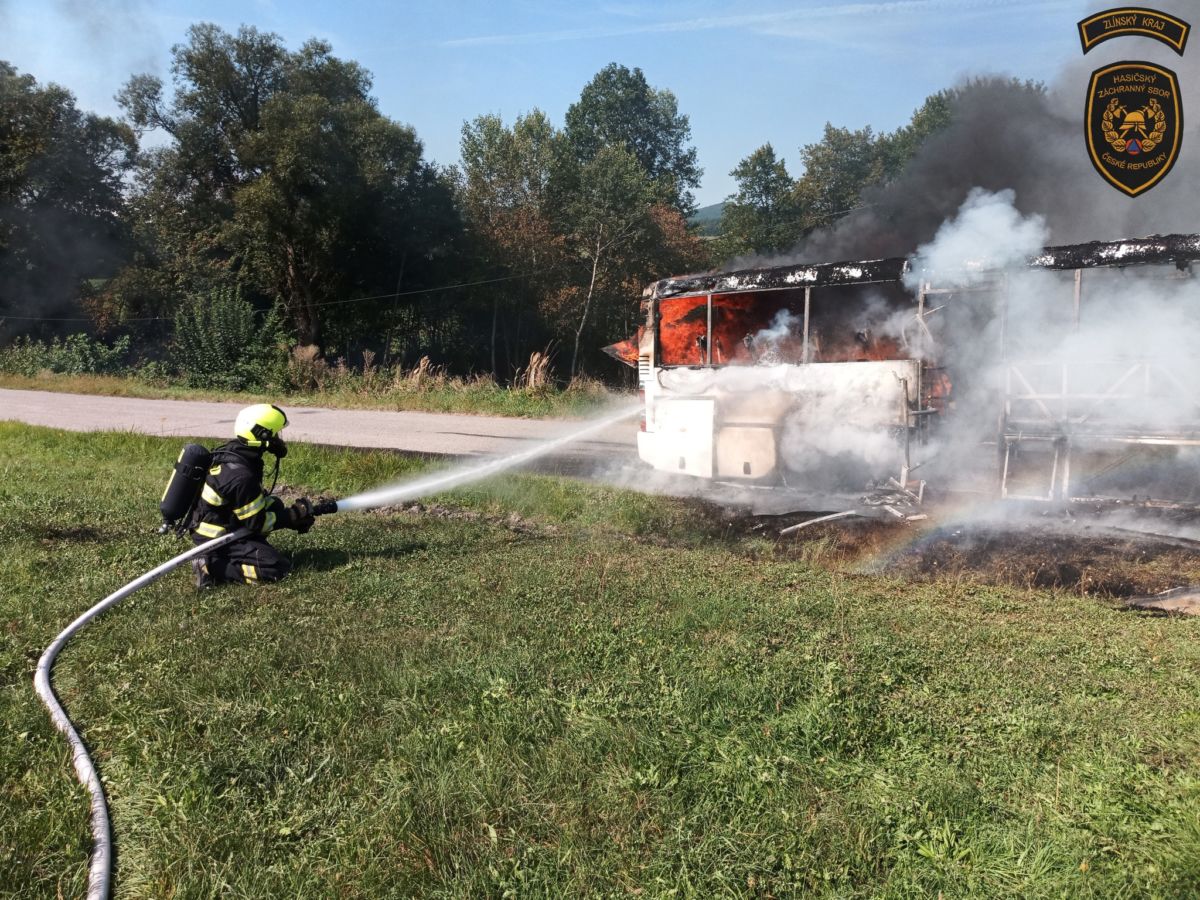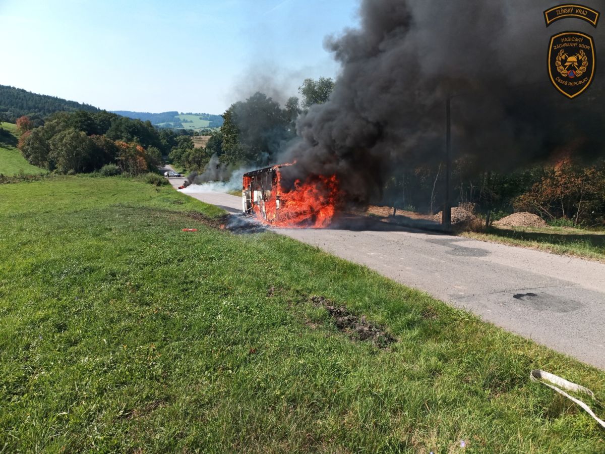 Požár autobusu u Tichova. Foto: HZS Zlínského kraje