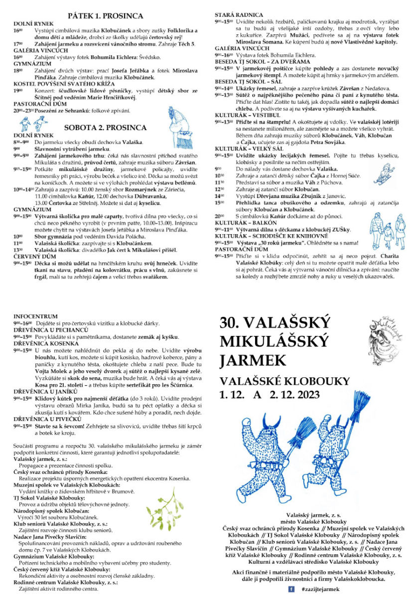 Program Valašského mikulášského jarmeku 2023 ke stažení jako PDF zde jako JPEG zde