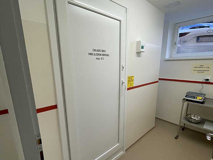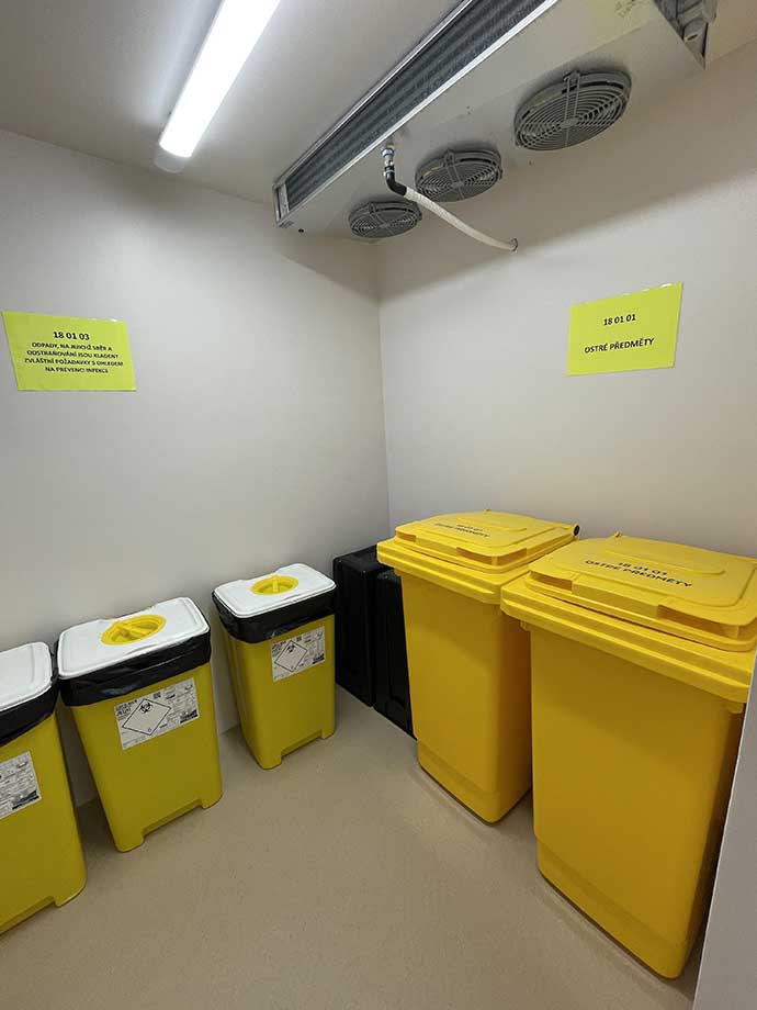 Chladicí box o objemu 6 m3 udržuje stálou teplotu do 8 stupňů Celsia, díky níž je možné nebezpečný odpad skladovat až po dobu 30 dní. Prostředí monitoruje teplotní záznamník, který v pravidelných intervalech dohlíží na stabilitu podmínek. Byla rovněž zpřesněná a zpřehledněná evidence odpadu, který je z ambulancí a dalších zdravotnických provozů do velkoobjemového skladu předáván.