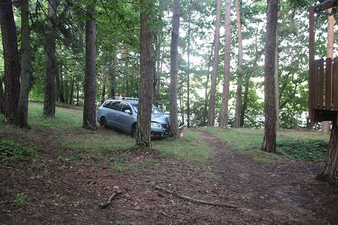 „Policisté z dopravního inspektorátu na místě zjistili, že mladý řidič, který v noci nadýchal dvě promile alkoholu, i přes zákaz policistů pravděpodobně počkal, až odjedou a chtěl odjet. Daleko nedojel. Vzhledem k množství alkoholu v organismu nezvládl řízení a narazil do stromu v lanovém centru. Škoda na vozidle Wolkswagen je asi padesát tisíc korun. Dechová zkouška i po devíti hodinách od doby, kdy nadýchal dvě promile, ukázala stále ještě jednu promile alkoholu,“ uvedla mluvčí policistů Monika Kozumplíková.