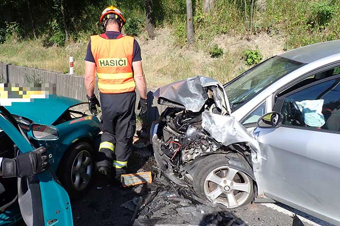 K nehodě byly vyslány dvě jednotky profesionálních hasičů, a to ze stanic Vsetín a Valašské Meziříčí. „Po příjezdu na místo velitel zásahu potvrdil nehodu dvou vozidel a motocyklu, který dále narazil do třetího vozidla. Silnice tak byla na nezbytně dlouhou dobu obousměrně uzavřena. Při nehodě byly zraněny dvě osoby, které skončily v péči posádky zdravotnické záchranné služby,“ popsala mluvčí hasičů Lucie Javoříková. U vozidel po nárazu došlo k většímu úniku provozních kapalin. Ty hasiči zasypali sorbentem.