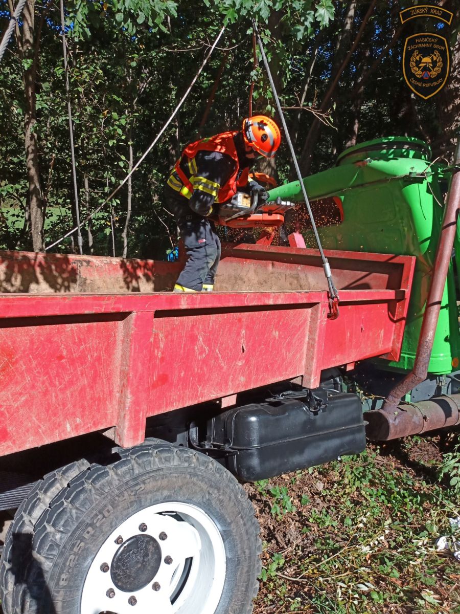 Zasahující hasiči stabilizovali poškozené vozidlo proti pohybu, a to především v prostoru značně poškozené kabiny. „Provedli jsme protipožární opatření. Velitel zásahu si na místo povolal vyprošťovací automobil, pomocí něhož vytáhli zaklíněný náklaďák zpět na cestu. V průběhu zásahu hasiči odstranili i poškozené stromy,“ uvedla mluvčí hasičů Lucie Javoříková.