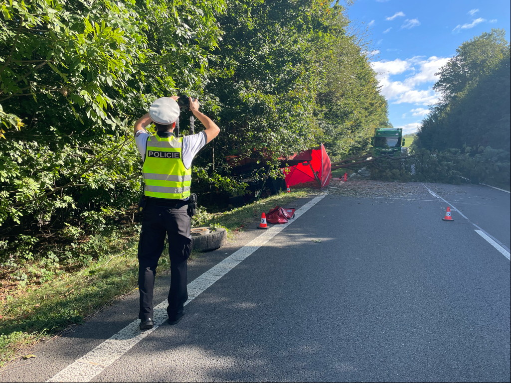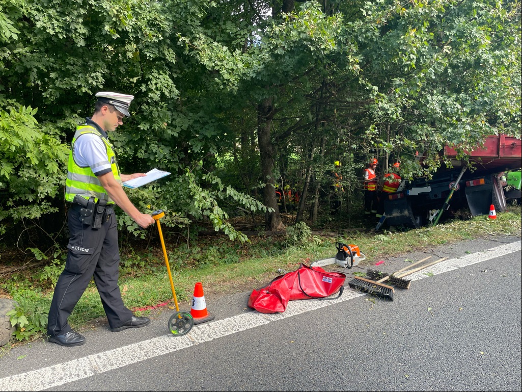 Řidič s nákladním vozidlem narazil do několika stromů. Jeden z nich se dokonce zlomil a spadl přes oba jízdní pruhy. Komunikace byla zpočátku zcela uzavřená a policisté odkláněli provoz. Později dopravu řídili kyvadlově.