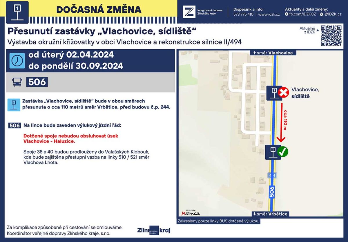 Zastávka „Vlachovice, sídliště“ bude v obou směrech přesunuta o cca 110 metrů směr Vrbětice, před budovu č.p. 244.