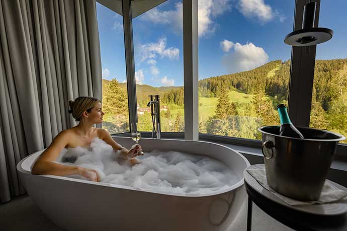 Doporučujeme také v hotelu zavítat do nové, rozšířené vinotéky, která je plná kvalitních moravských i italských vín, a vyzkoušet nové krásné pokoje se zimní zahradou a vanou přímo u okna.