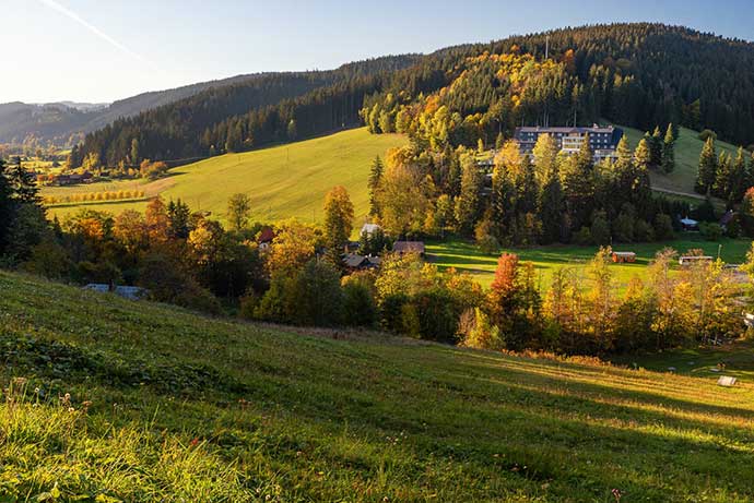 A až si budete chtít od jídla odpočinout a nabrat nové síly, vyrazte na procházku krásnou okolní krajinou a pak se zahřejte v hotelovém L-Spa, kde se teď nově konají každý den saunové rituály. Ubytovaní hosté mají navíc i volný vstup do nedalekého Wellness Horal s termálními bazény.