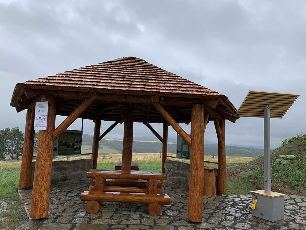 Prostor je osvětlen pomocí solárních lamp. Energie ze slunce je využita také pro další účely. Dobít si tu můžete mobilní telefon, ale i elektrokolo, k dispozici je také kompresor na dofouknutí kol. Vyhlídkové místo je pokryto WiFi sítí a pro zvýšení bezpečnosti je zde nainstalován kamerový systém, který současně plní funkci webkamery.