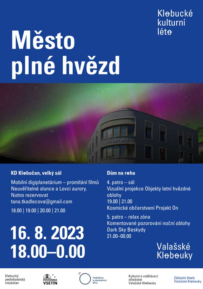 Ve středu 16. srpna 2023 proběhne ve Valašských Kloboukách druhý ročník akce Město plné hvězd. Událost zaměřenou na vesmír pořádá Klobucký podnikatelský inkubátor společně s partnery, kterými jsou Hvězdárna a planetárium Brno, Hvězdárna Vsetín a další místní partneři akce.