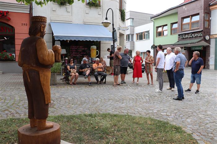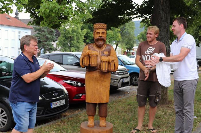 Na Masarykově náměstí ve Valašských Kloboukách byla slavnostně odhalena nová dřevěná socha, která je vítězným dílem z letošního ročníku Valašského kumštování. Autorem uměleckého artefaktu je řezbář Tomáš Naňák. Sochu hospodského můžete najít v horním rohu náměstí, kde doplňuje venkovní uměleckou galerii města Valašské Klobouky.