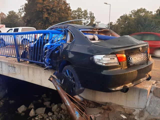 Zábradlí projelo skrz autem. Řidič měl štěstí