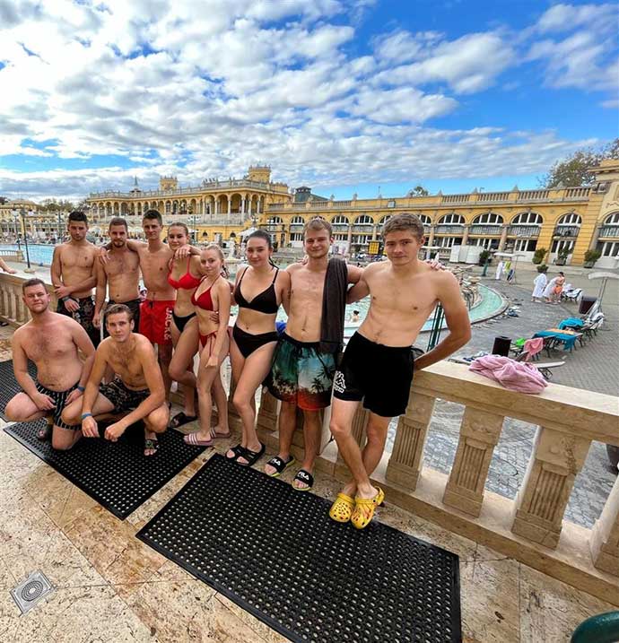 Během třítýdenního pobytu měli žáci možnost dokonale poznat hlavní město Maďarska. Společně jsme navštívili dominanty Budapešti: parlament, Budínský hrad a Rybářskou baštu. Většina žáků navštívila i jedny z největších termálních lázní v Evropě, a to Széchényi lázně. Žáci měli po práci většinou volný program, který využívali k poznávání různých koutů Budapešti. Všichni vyzkoušeli místní specialitu – langoš. Ochutnali i zcela nové kombinace, které pro nás byly naprosto nezvyklé – např. smažený řízek a rýže, segedínský guláš s rýží a jablky nebo hranolky a sladké zelí.