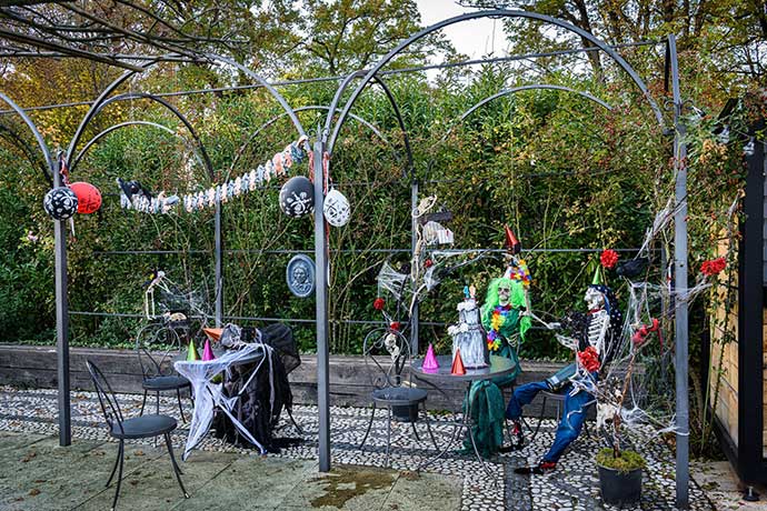 Během halloweenských oslav budou otevřeny všechny restaurace v areálu, Chocolatérie a Kefa bar. „Restaurace Tyrol navíc zve na speciální halloweenské menu, budete tak moci ochutnat třeba Lektvar z žabích stehýnek a netopýřích křídel nebo smaženou baziliškovu tlapu. Letošní gurmánskou novinkou bude stánek U dvou nebožtíků v blízkosti Tyrolu, který nabídne velmi originální menu,“ pozvala návštěvníky Romana Mikešová.